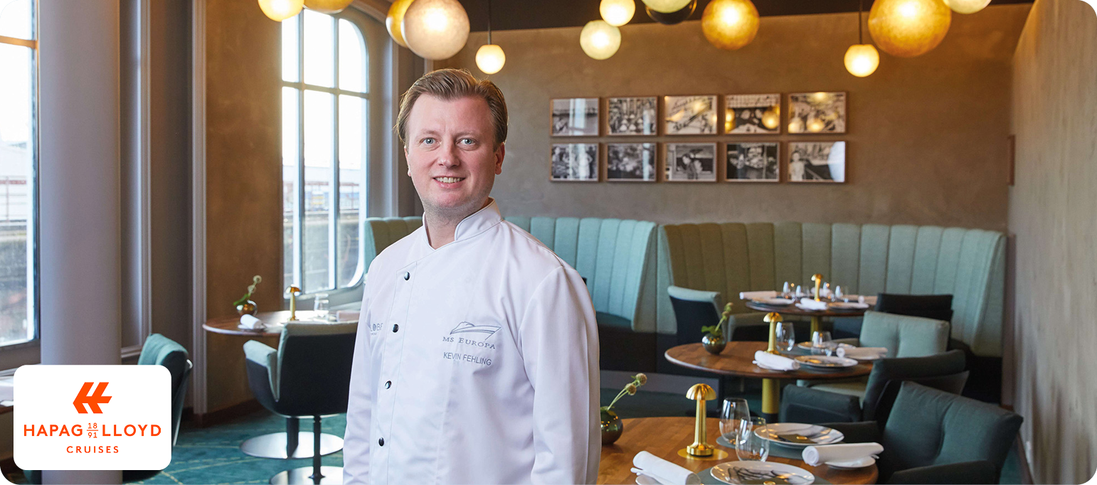 Erleben Sie auf acht Reisen in 2026 Spitzenkoch Kevin Fehling, Chef des "The Table“ in Hamburg und ausgezeichnet mit 3 Sternen des Guide Michelin. Er gehört zu den Stars der deutschen Sterneküche und bringt mit The Globe by Kevin Fehling seine preisgekrönte Küche auf die EUROPA. In diesem Gourmetrestaurant dürfen Ihre Sinne auf eine exquisite kulinarische Weltreise gehen, verführt von Zutaten und Aromen unterschiedlichster Breitengrade – unkonventionell, modern und innovativ.